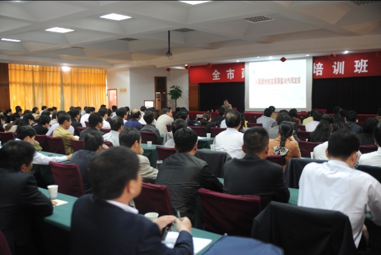 4月26日,市政协举办本届政协委员集中培训活动,邀请省政协政策研究室副主任金建民作辅导报告。市政协副主席谢荣洲主持报告会。 金建民在报告中全面详实、客观生动地介绍了人民政协的发展历程、主要职能、履职方式、组织体系,使委员们进一步了解并学习了新时期政协委员的主要职责。报告会上,谢荣洲希望各镇、管委会联络委定期组织学习,提高自身理论素质和履行职责的能力和水平,切实把荣誉和责任统一起来,把理论知识和具体实践统一起来,更好地围绕中心服务大局,推动句容的跨越赶超、转型升级。